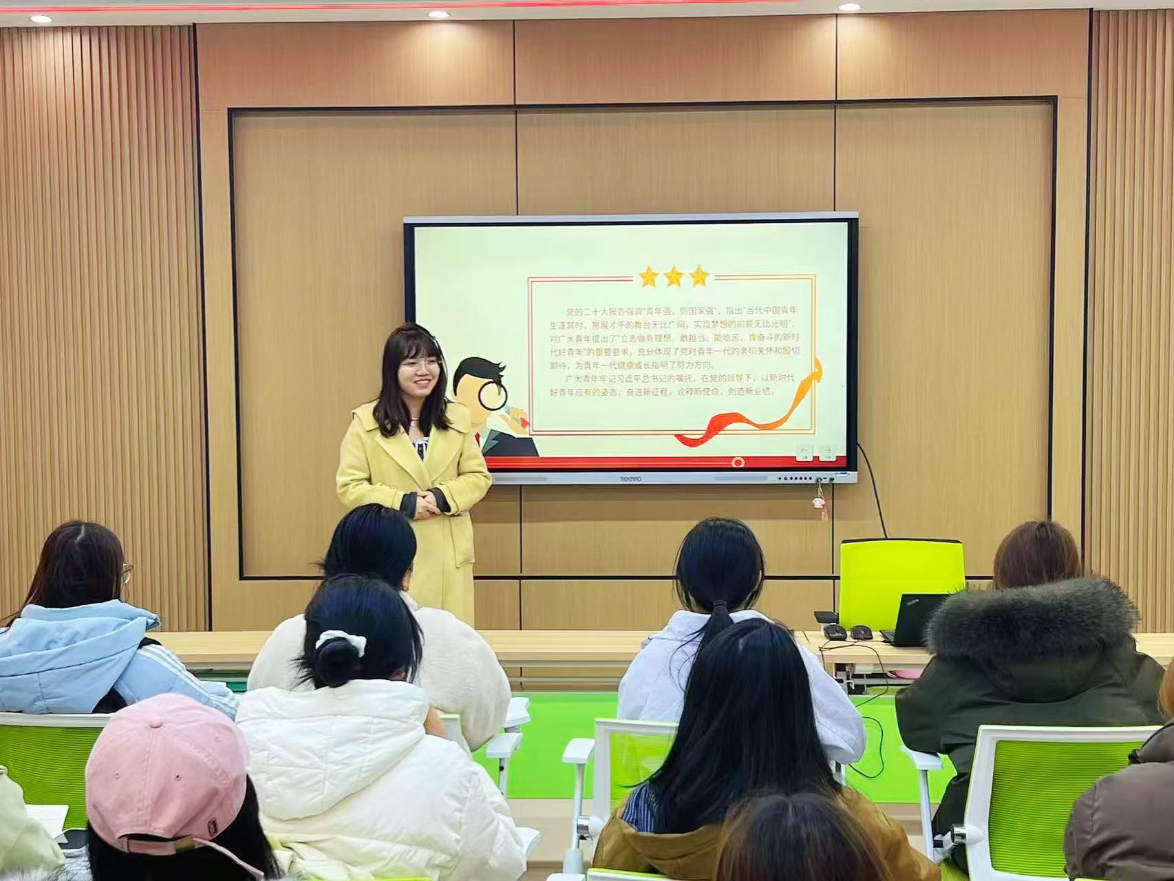 李申淼老师围绕马克思主义中国化时代化的核心内涵、当代青年的三大使命以及青年践行使命担当的行动路径三个维度展开讲授。她巧妙融入西迁精神等鲜活案例,以清晰透彻的理论阐释,搭配视频分享,让模范榜样走进学生视野,强调对于陕西的高职学生来说,就是要深深扎根三秦大地,以精湛技能为羽翼,以使命担当为灯塔,在陕西的高质量发展中,在制造业升级、乡村振兴、生态保护等领域,挥洒青春汗水、贡献青春力量。