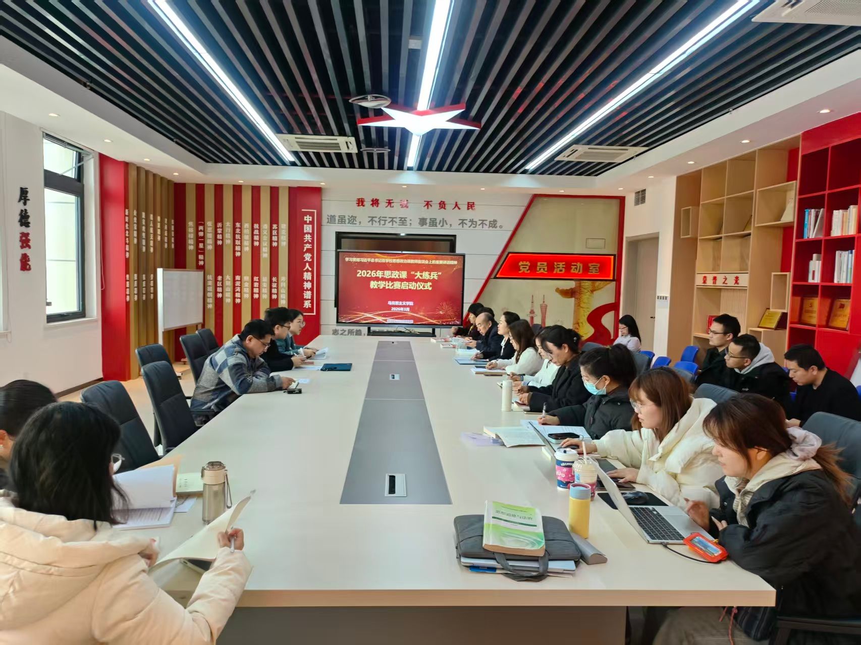3月18日下午,马克思主义学院召开2026年思政课“大练兵”教学比赛启动仪式。会议由院长贾剑锋主持,全体参赛教师及指导教师参加。
