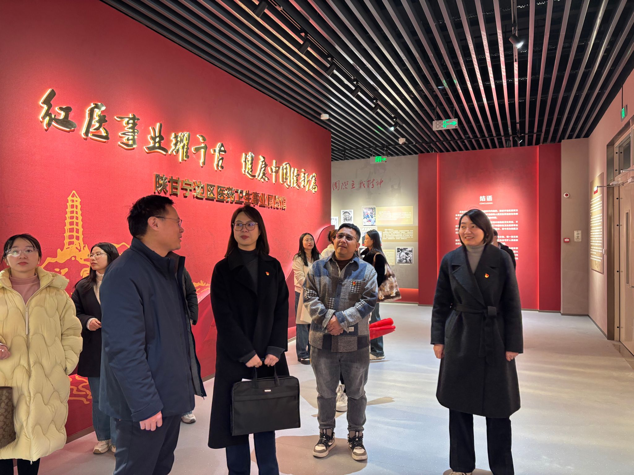 签约仪式结束后,两院党员教师一同前往陕西中医药博物馆红医馆开展主题党日活动。在张亚军教授的生动讲解下,大家深入学习革命战争时期根据地医疗卫生事业发展的艰辛历程与感人事迹,深刻感悟了“红医精神”的崇高内涵与时代价值。