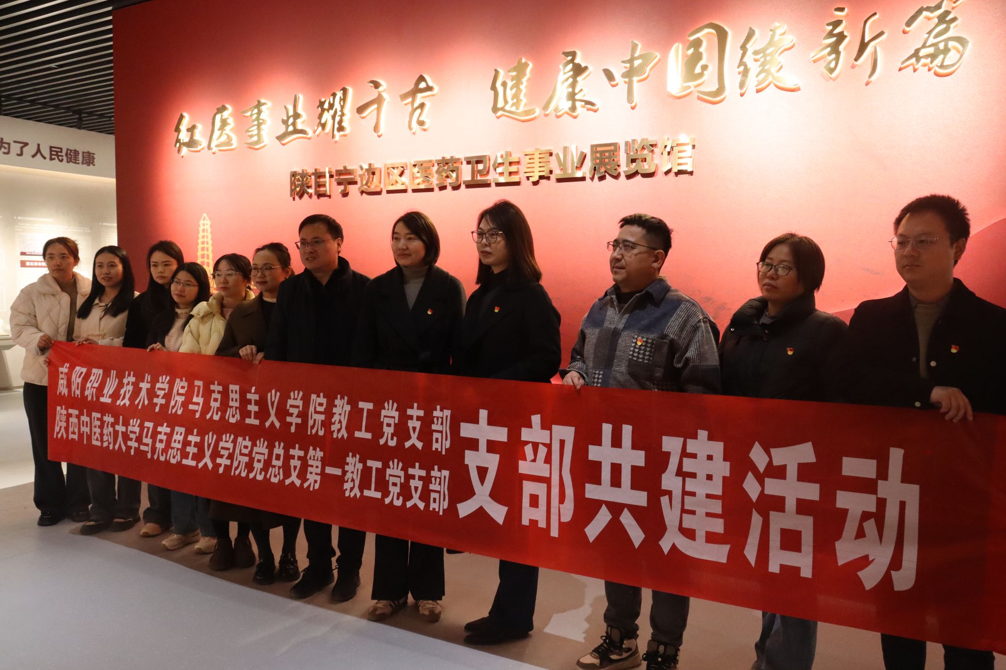 为深入学习贯彻习近平新时代中国特色社会主义思想,深化新时代高校思政教育改革创新,落实教育部《高校党建工作重点任务》及学院党委关于加强基层党的建设相关文件精神,2025年12月11日,咸阳职业技术学院马克思主义学院与陕西中医药大学马克思主义学院第一教工党支部共同举办支部共建签约仪式暨参观红色医馆主题党日活动。